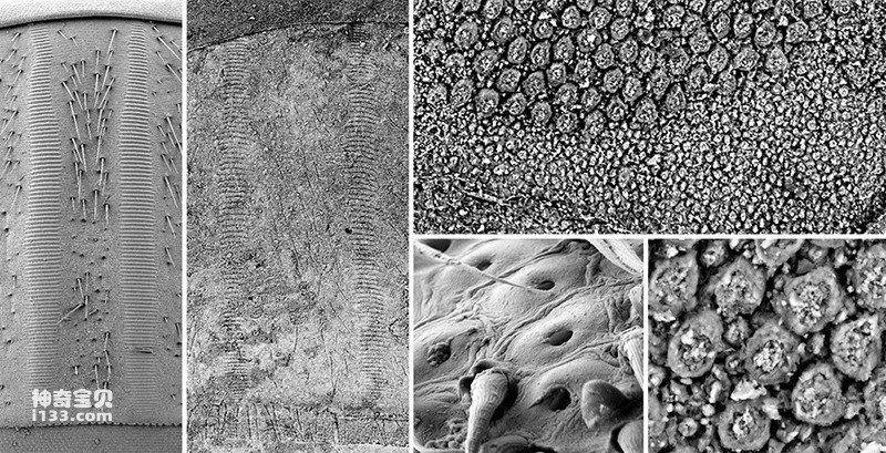 现代和化石葬甲音锉和触角化学感受器的扫描电镜照片