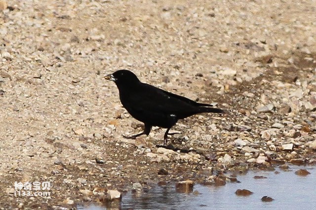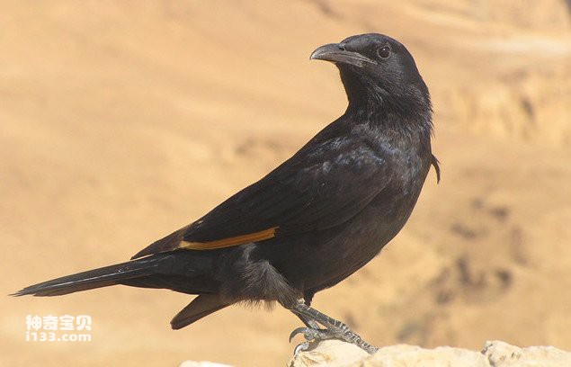 黑百灵是百灵科百灵属的一种,分布于欧亚大陆及非洲北部。雄鸟易辨,通体黑色;雌鸟似二斑百灵但下体纵纹浓密,翼合拢时偏黑色,飞行时翼下黑色,腿青石灰色。黑百灵飞行时的叫声似云雀,鸣唱飞行时振翼放慢,高飞时直冲入云,在地面亦善奔走,受惊扰时常藏匿不动,因有保护色而不易被发觉。常站高土岗或沙丘上鸣啭不休,鸣声尖细而优美。
