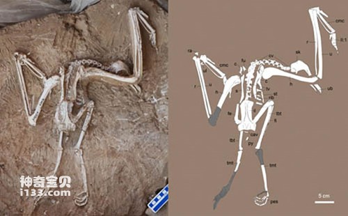 长嘴中新近白兀鹫化石照片和线条图