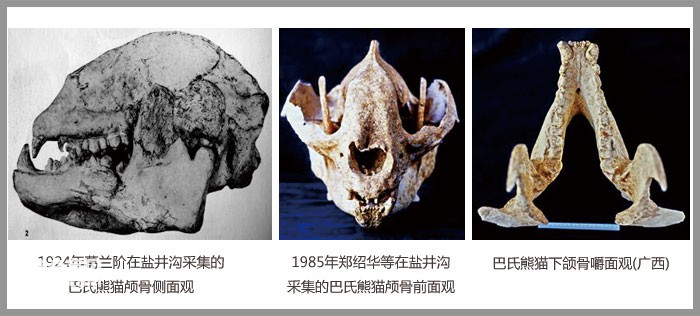 新中国成立不久,以裴文中教授为首的华南洞穴考察队,在广西、广东、湖南、湖北等地的数百个山洞发掘出了大批熊猫化石。材料包括颅骨、下颌骨和牙齿等。