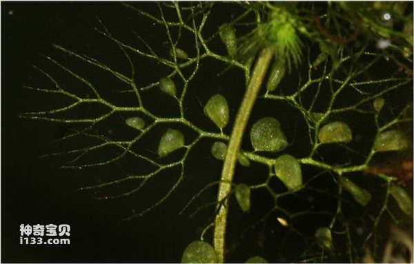 这是水生食虫植物狸藻的专利捕虫技术。狸藻类植物通常不大,能够在水里形成不超过10毫米的微型囊状真空腔室。食物触碰到特定开关时就会瞬间被气压吸至腔室内,被狸藻慢慢吸收。狸藻是一类在全世界大多数地区都广泛分布的水生植物,也是离我们生活很近的一种食虫植物,只可惜它的个体通常很小,在水中的捕食过程往往在零点几秒内结束,若将这一过程放慢速度细看,我们就会看到这类捕虫器极为精彩的捕食本领。