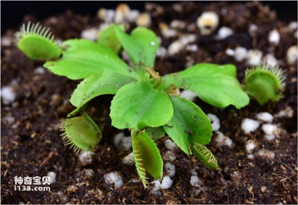 捕蝇草在长期的演化中拥有了类似兽夹的结构——捕虫器:捕虫器为两片半月型的、边缘具尖刺的夹状结构,夹内分布有3根纤细而敏感的触毛,一旦猎物在一定时间内连续碰动其中两根触毛,兽夹似的叶片就能在三分之一秒内迅速闭合,叶缘的尖刺结构紧紧相扣,形成像铁笼一样的结构,将猎物牢牢锁在其中。渐渐地,两枚叶片会因为“牢”里昆虫不断地运动并刺激叶片而完全粘合,最后将昆虫杀死并消化吸收。