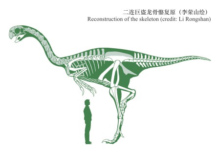距今约8000万年前的二连巨盗龙,属于鸟类的近亲窃蛋龙类,代表一种过渡类型的窃蛋龙类,也是目前世界上发现的最大手盗龙类(一个包括窃蛋龙类在内的似鸟恐龙类群)。研究成果于2007年6月14日发表在英国《自然》杂志上,并入选了2007年度美国《时代》杂志评选的《世界十大科技发现》。