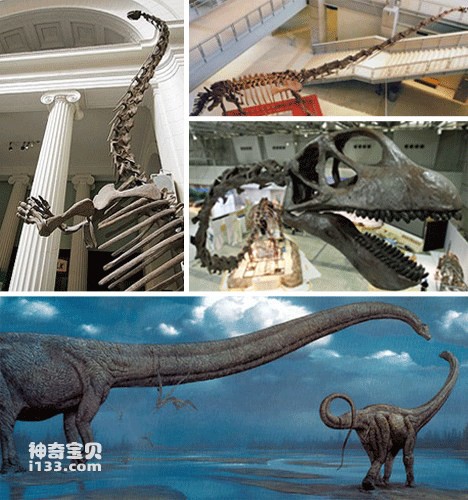 马门溪龙与另一种著名的恐龙――雷龙外形非常相似,唯一的不同就是脖子长度。它们的脖长最高可达到46英尺(约合14.02米),占到身体总长的一半。马门溪龙是一种食草恐龙,生活在距今1.5亿年前。
