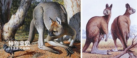 巨型短面袋鼠身高可达到10英尺(约合3.04米),体重可达到500磅(约合227公斤),与它们的现代近亲拥有一些相似的特征。所不同的是,它们的面部较短,足部也存在微小差异。巨型短面袋鼠生活在距今1.8万年前,人类活动最终导致它们走向灭绝。