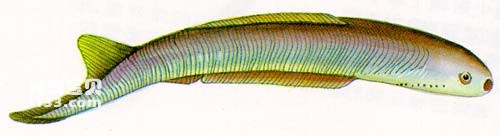 英格兰志留纪中期的海相沉积物中发现了更完整的早期脊椎动物化石,它们代表了一些样子像鱼的非常原始的脊椎动物:身体细长呈管状;没有上下颌,只在身体的前端有一个吸盘状的口;眼睛后面、头部两侧各有一排圆形的鳃孔;具有分成上下两叶的尾鳍,下叶较长、上叶较短而高--这样的尾巴类型叫做歪尾型。这样的动物与现代仍然生活在海洋中的七鳃鳗有很多的相似之处,它们被分别命名外为莫氏鱼和花鳞鱼。