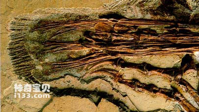 产于义县组下部的又一种兽脚类恐龙是意外北票龙,它的发现正如它的种名一样实属意外。1997年,北票市化石管理处的李荫仙先生向中国科学院古脊椎动物与古人类研究所捐献了一堆比较破碎的化石,当时谁也没想到,从这么一堆看似无足轻重的破碎化石竟然“飞”出了“金凤凰”,研究者徐星副研究员经过认真细致的钻研,发现它是镰刀龙超科中的一种新的重要成员。
