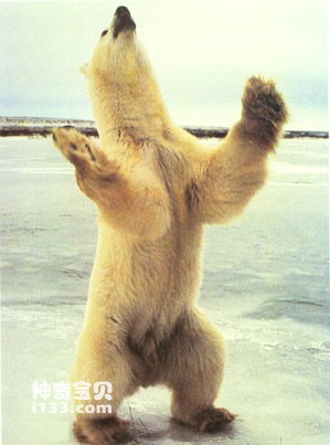 北极熊全身披着厚厚的白毛,甚至耳朵和脚掌亦是如此,仅鼻头一点黑。而且其毛的结构极其复杂,里面中空,起着极好的保温隔热作用。因此,北极熊在浮冰上可以轻松自如地行走,完全不必担心北极的严寒。北极熊的体形呈流线型,善游泳,熊掌宽大犹如双桨,因此在北冰洋那冰冷的海水里,它可以用两条前腿奋力前划,后腿并在一起,掌握着前进的方向,起着舵的作用,一口气可以畅游四五十公里。北极熊爪如铁钩,熊牙锋利无比,它的前掌一扑,便可以将人的头颅打得粉碎,身首异处。北极熊奔跑起来,风驰电掣,时速可达60公里,但并不能持续太久,只进行短距离冲刺。所以如果你在北极遭到了北极熊的攻击,你可以跟它商量进行长跑比赛,这样北极熊必败无疑。