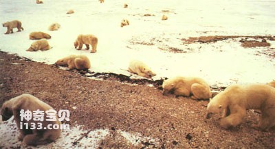习惯单独行动的北极熊,有时也会聚集在一起