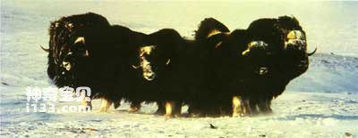 麝牛在危险来临时,围成圆阵