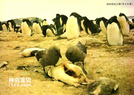 赋鸥是企鹅的大敌。在企鹅的繁殖季节,贼鸥经常出其不意地袭击企鹅的栖息地,叼食企鹅的蛋和雏企鹅,闹得鸟飞蛋打,四邻不安。