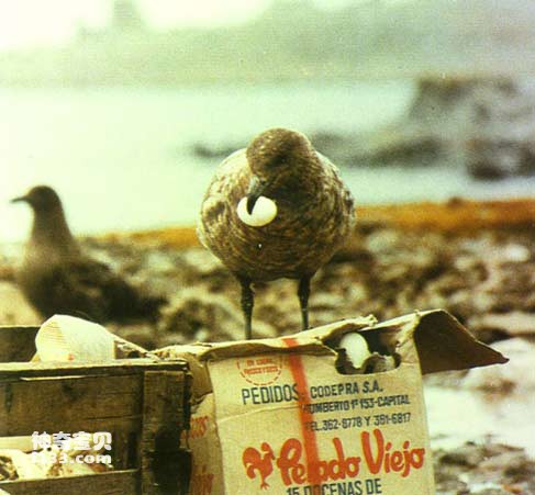 在南极海鸥中有一种褐色海鸥叫贼鸥,听其名,就会知道它大概不是什么好东西,有人把它称为空中强盗,一点也不过分。尽管它的长相并不十分难看,褐色洁净的羽毛,黑得发亮的粗嘴喙,日光炯炯有神的圆眼睛,但因其惯于偷盗抢劫,给人一种讨厌之感。