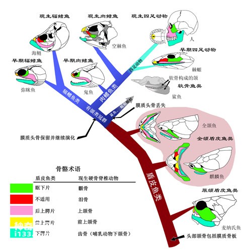 图3脊椎动物膜质颌骨的演化之路(Brian Choo绘)