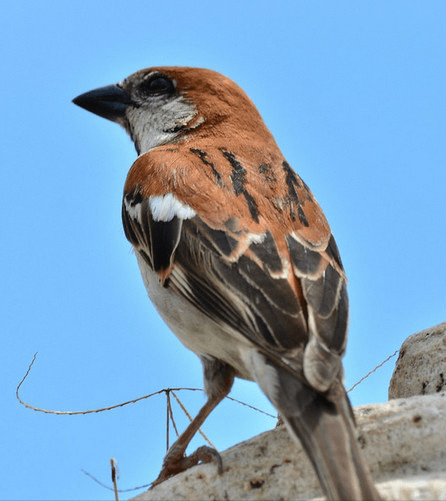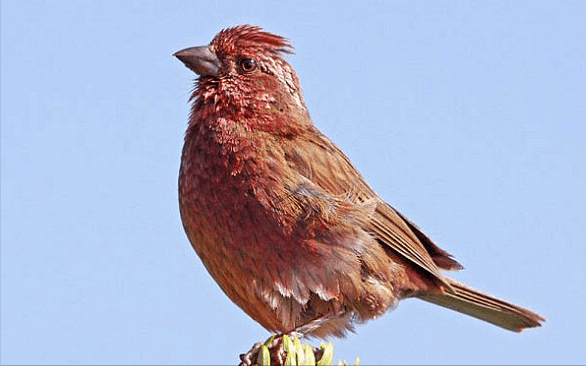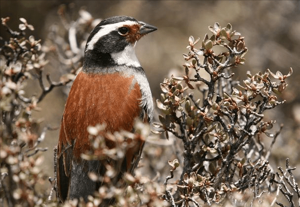 藏鹀是中国特有鸟类。与雀科的鸟类相比较为细弱,上下喙边缘不紧密切合而微向内弯,因而切合线中略有缝隙;体羽似麻雀,此鹀以具有特殊的鲜红栗色背部,及上胸的黑带与下胸的纯灰色等形态特征,与其它各种鹀显著区别。。是我国青藏高原东部特有的珍稀鸟类。