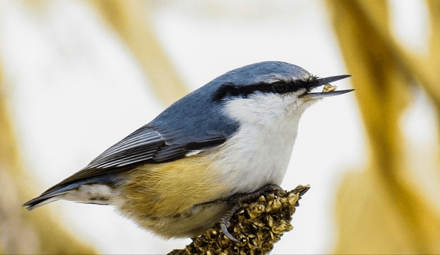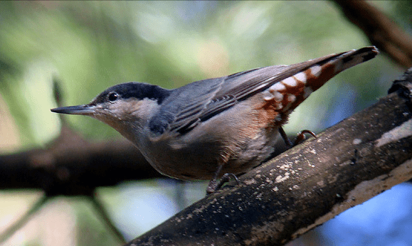 䴓[shī]——体型较小,嘴长而尖,脚短爪硬,唯一一种能头向下尾朝上往下爬树的鸟类。