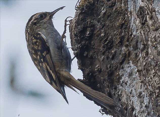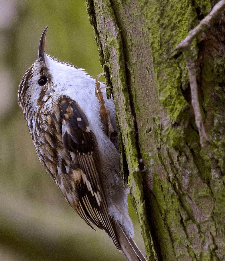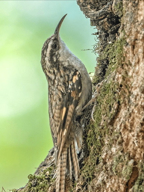 旋木雀类:这名字估计没怎么听说,但是,说它的另外一个名字,可能就熟悉了:爬树鸟,它攀缘于树干,常沿着树皮寻找昆虫吃。常见的有:普通旋木雀、高山旋木雀、褐喉旋木雀、锈红腹旋木雀。共同特征:嘴细长,向下弯曲,长度相当于头的其余部分或更长。腿短而强健;尾为很硬且尖的楔形尾,似啄木鸟,尾羽长而挺直。浅褐色。后趾和爪特长,擅长攀树。