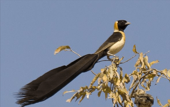 维达鸟是梅花雀科的鸟类,幼鸟由寄主喂养长大。因常发现于贝宁的维达镇,故得名。维达鸟虽为小鸟,但长尾所占鸟体的比例绝对是鸟中之最,这种鸟其貌不扬,尾羽却难得一见,雄鸟主要呈黑色,4根中尾羽极长,以尾羽冠压雀类之首。