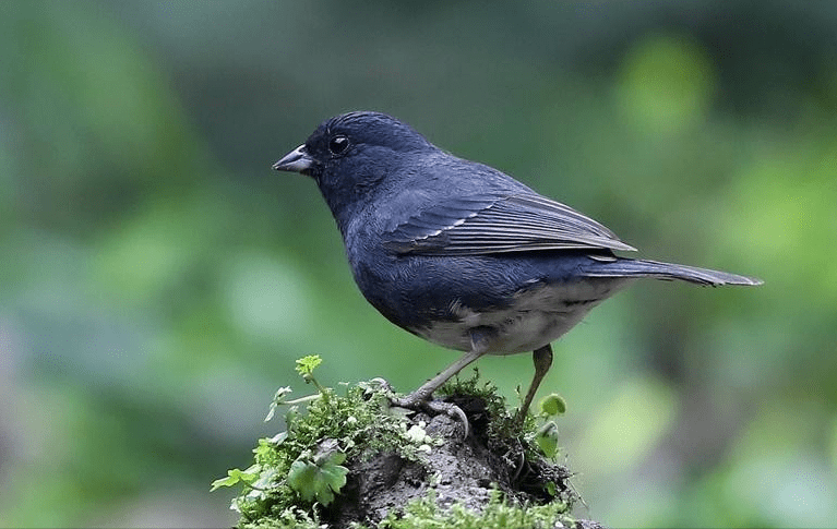 蓝鹀中国特有品种。蓝鹀雄性成鸟,通体石板灰蓝;胁羽、下腹和尾下覆羽纯白;飞羽黑色,有蓝灰色羽缘,内侧飞羽内翈基段有白斑;尾羽黑色,羽缘灰蓝色,最外侧一对尾羽从内翈先端向下延伸,越过羽轴直达外翈基部有一长形弧状白斑;腋羽白色。